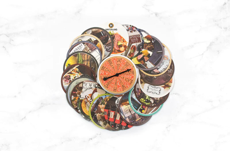 Your tin more than pays for itself usingjust three of the 20 coasters. Plus, choosing to dine at independent restaurants strengthens the local economy with every dollar you spend. Dine Local, Play Local, Live Local!